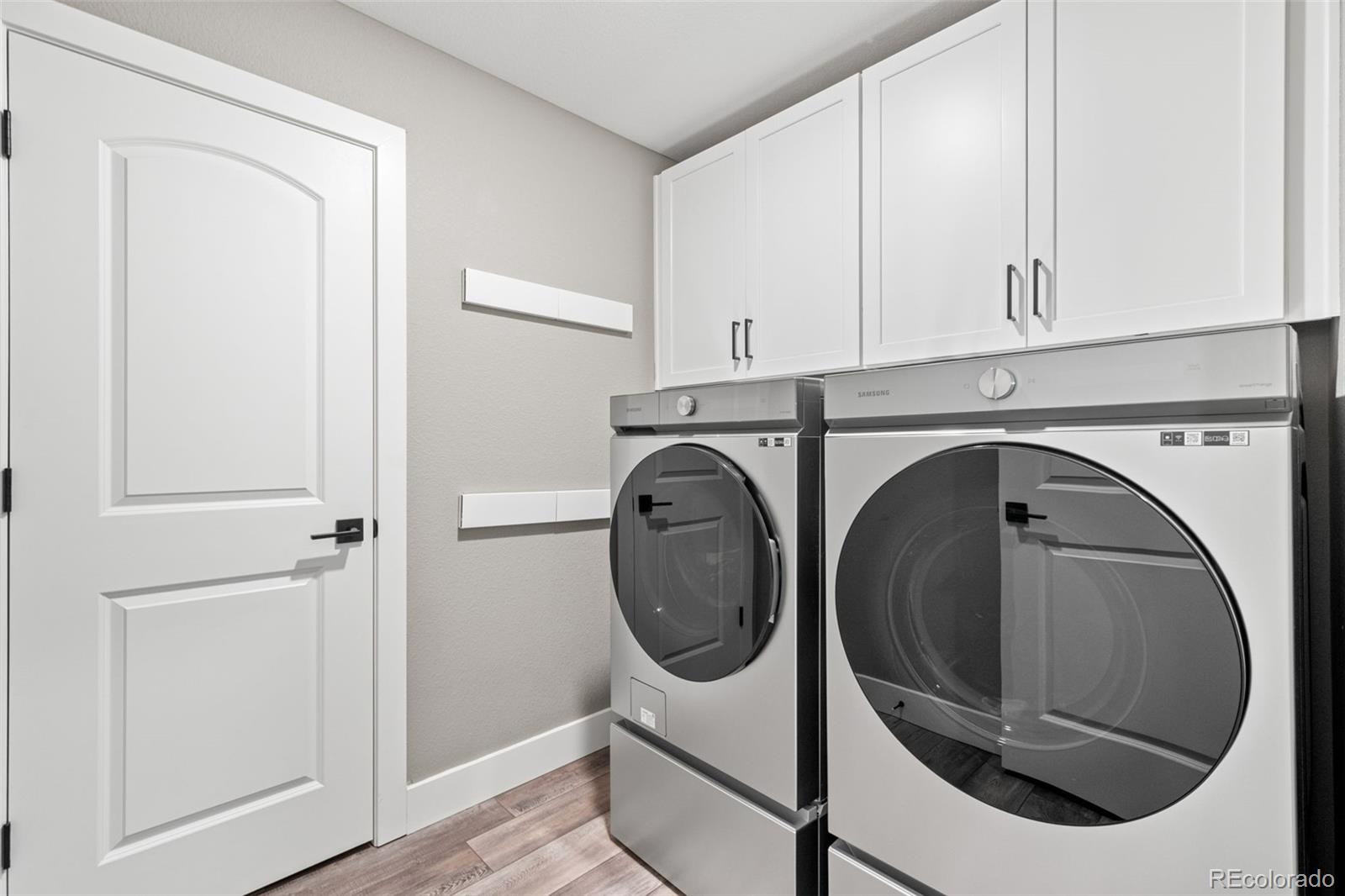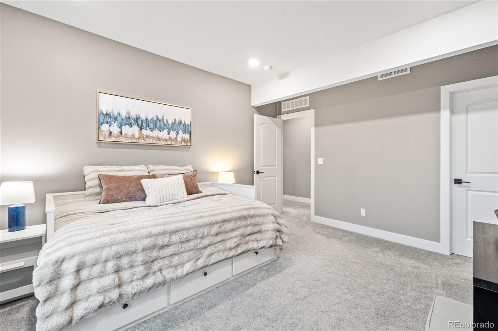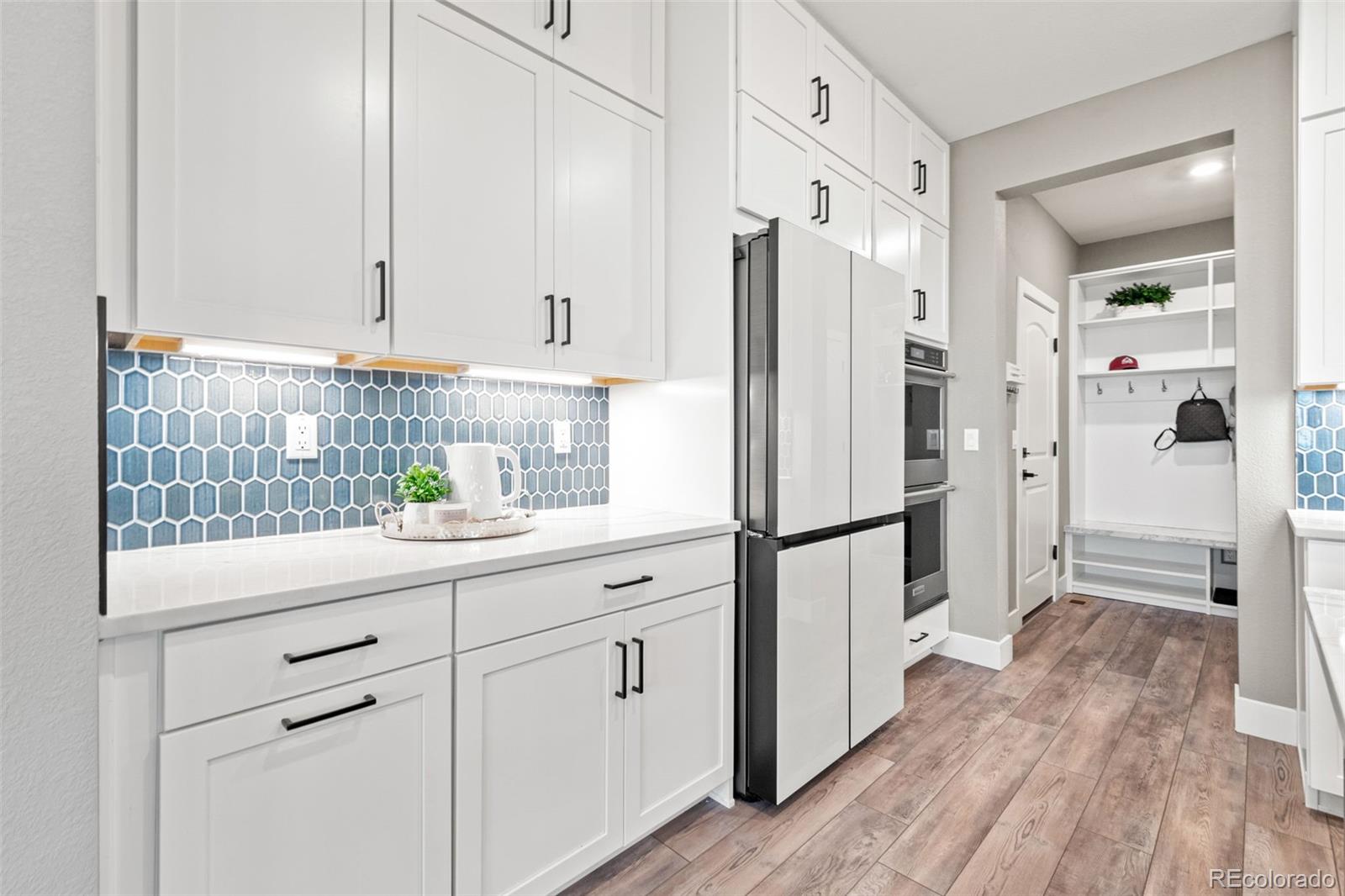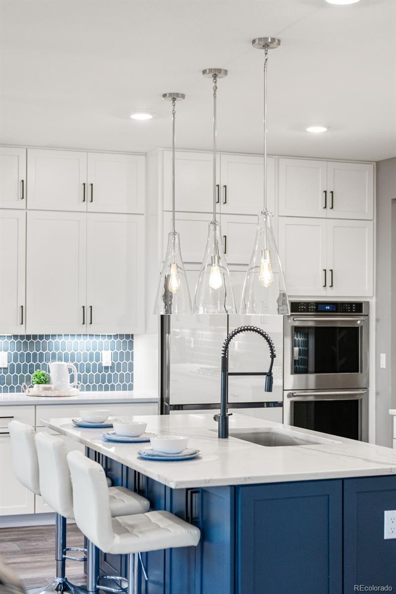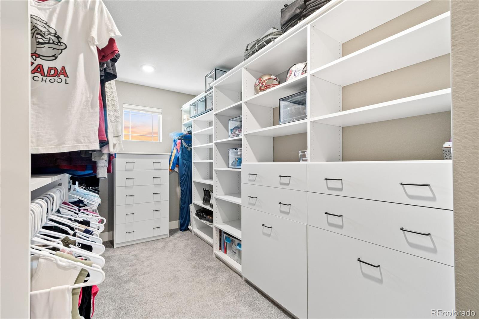 Every detail has been considered: built-in surround sound on main and lower levels, upgraded metal banisters, exterior Trimlights, dedicated EV charging, Cat6 wiring throughout, and a motorized storage lift in the garage. Enjoy SNOW REMOVAL and front yard maintenance by the HOA. Community has 2 Clubhouses/Fitness Centers, Pool, Parks, Trails, Tennis Court and onsite K8 school.