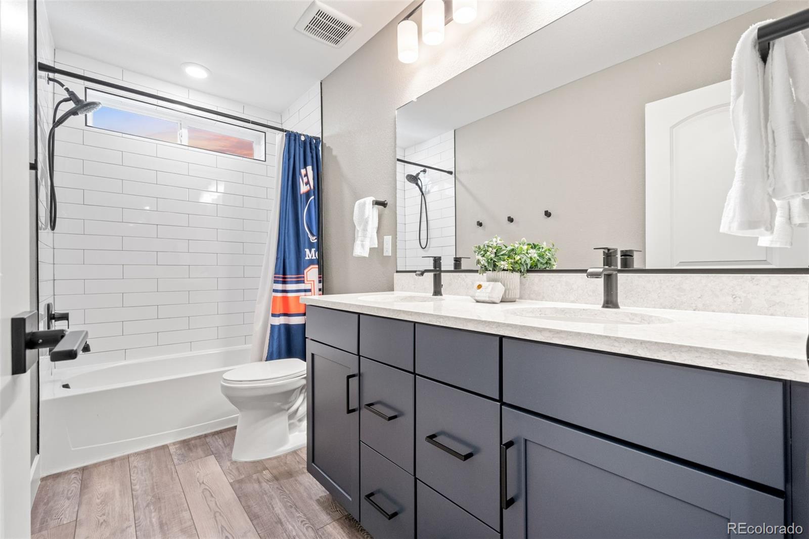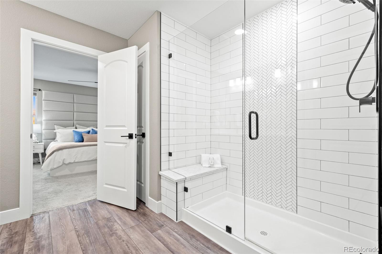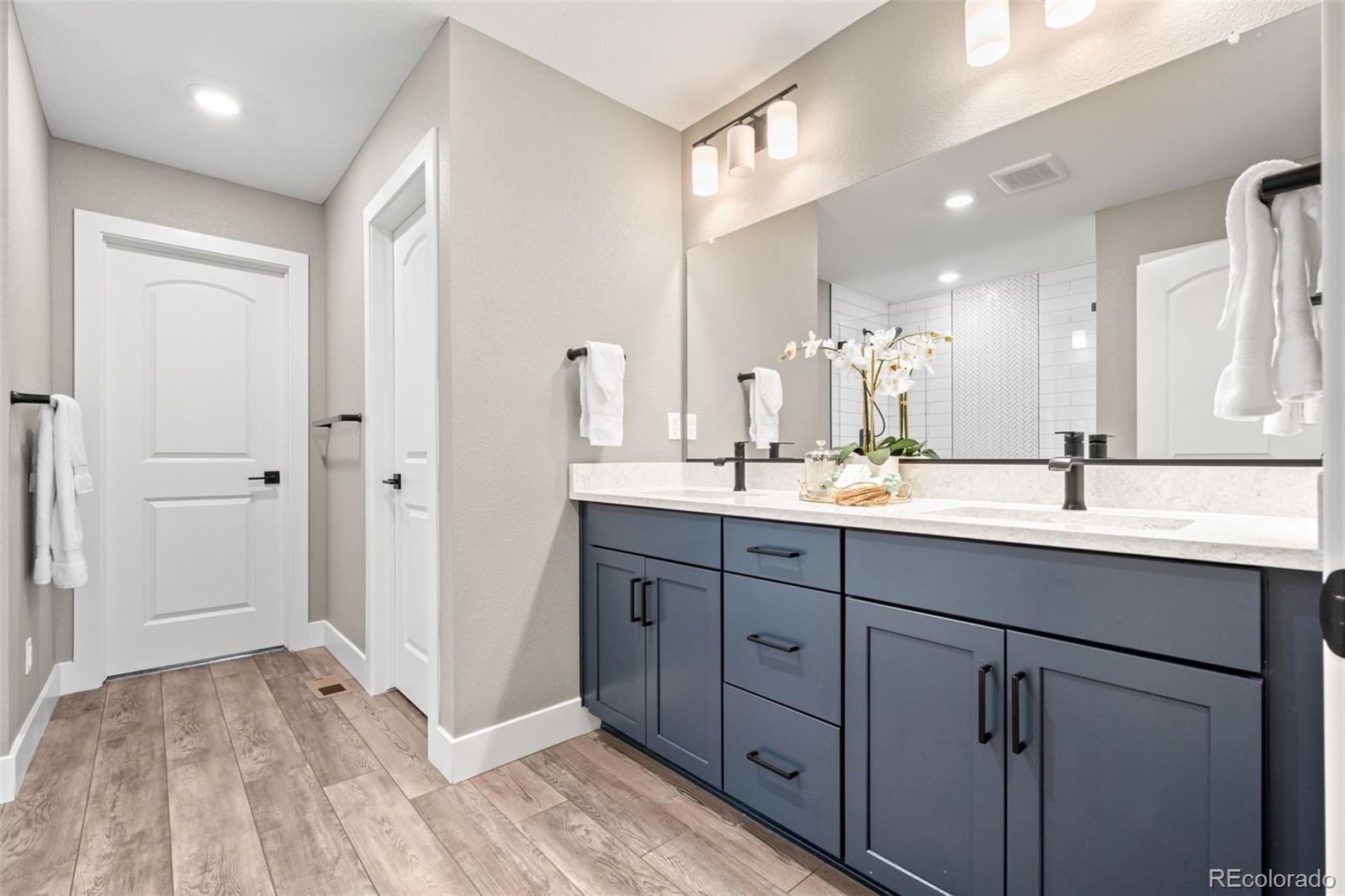 Upstairs, a spacious loft with cozy window seats invites you to take in mountain-to-city views. The primary suite is a retreat with serene open-space vistas, a spa-inspired bath with dual quartz vanities, frameless tiled shower, and a custom walk-in closet. Two additional bedrooms share a large full bath with dual sinks.