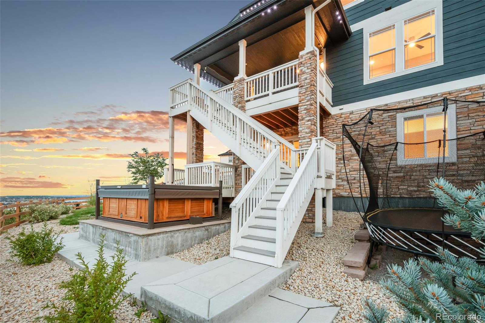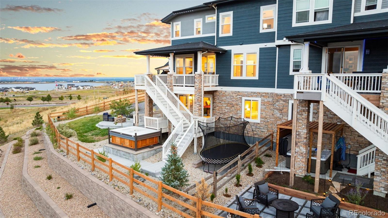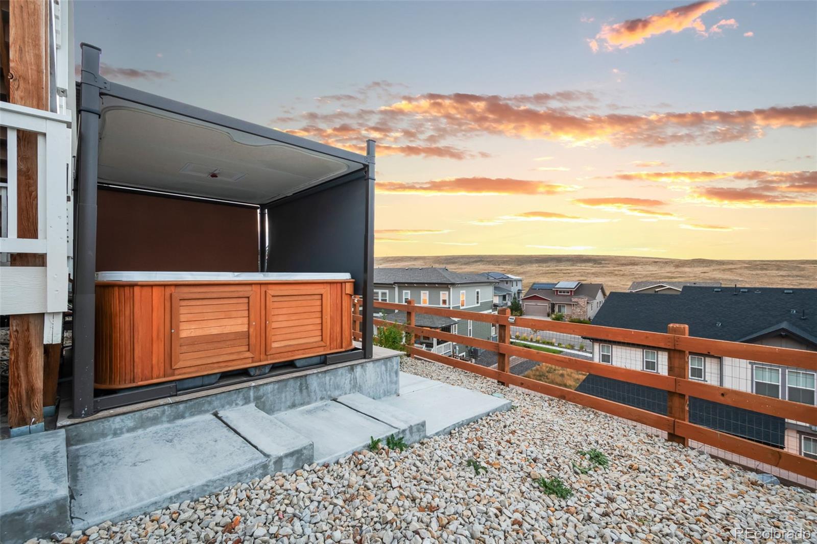 Step outside to the covered deck and take in sweeping views from sunrise to sunset. The backyard is designed for year-round enjoyment with a firepit for s'mores under the stars, a top-of-the-line Arctic Spas hot tub with motorized cover for privacy, and space for fun and relaxation. With thoughtful upgrades, spectacular views, and a community setting that balances tranquility with convenience, this home delivers the best of Colorado living.