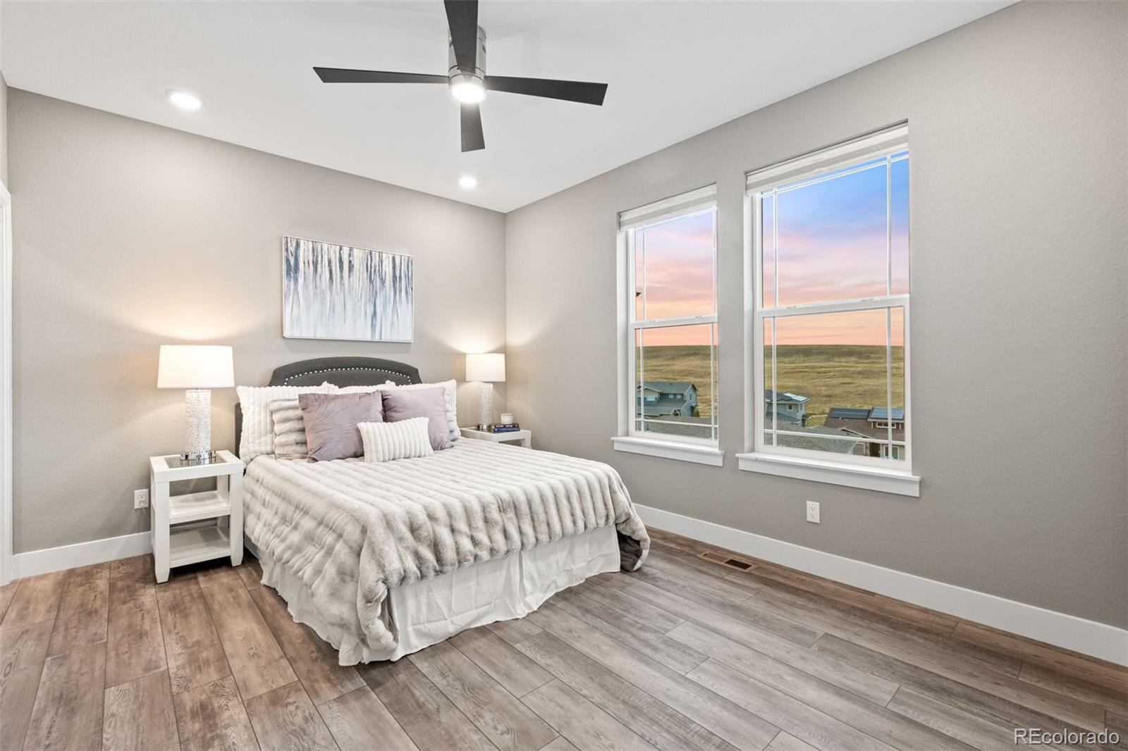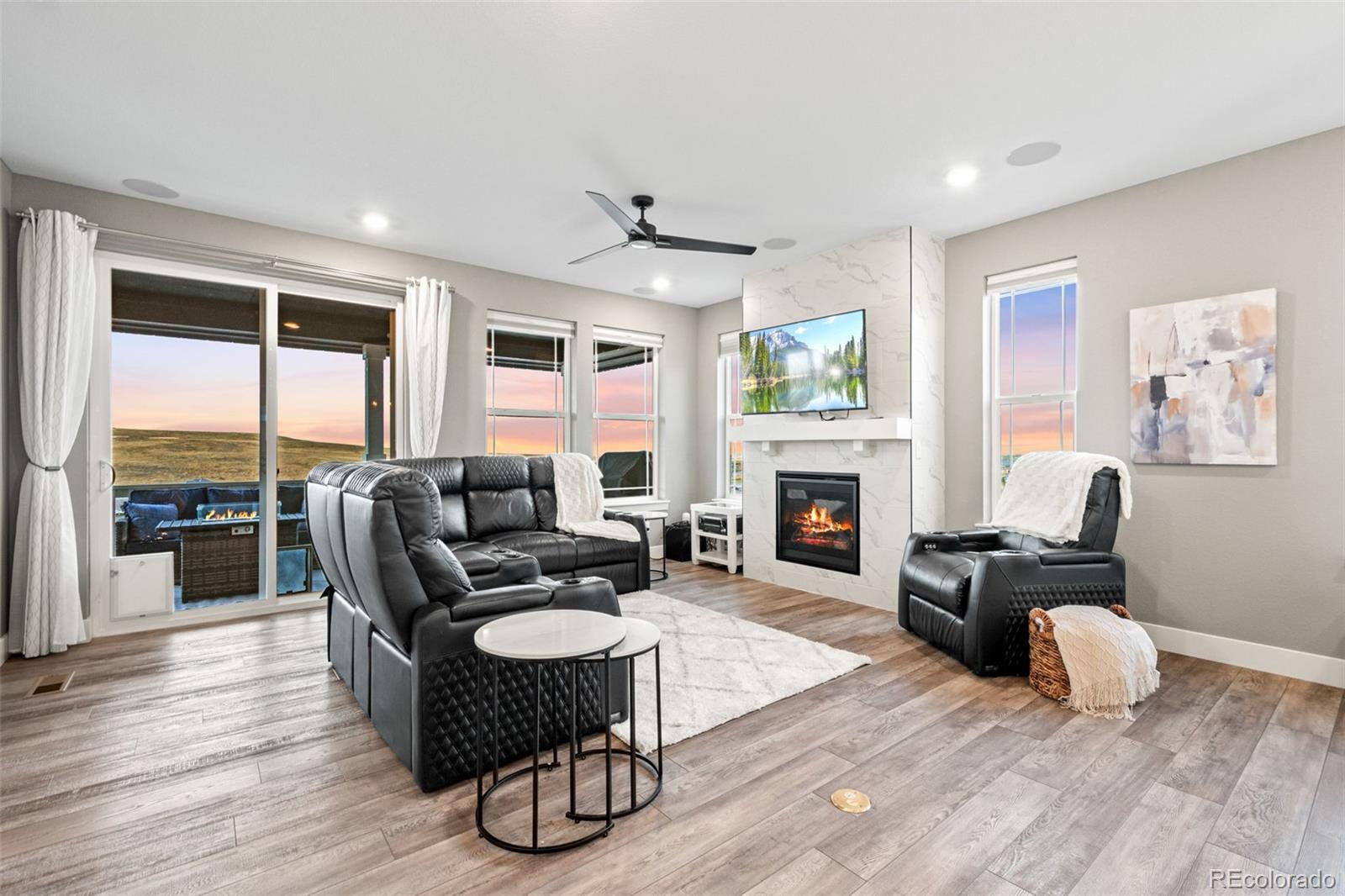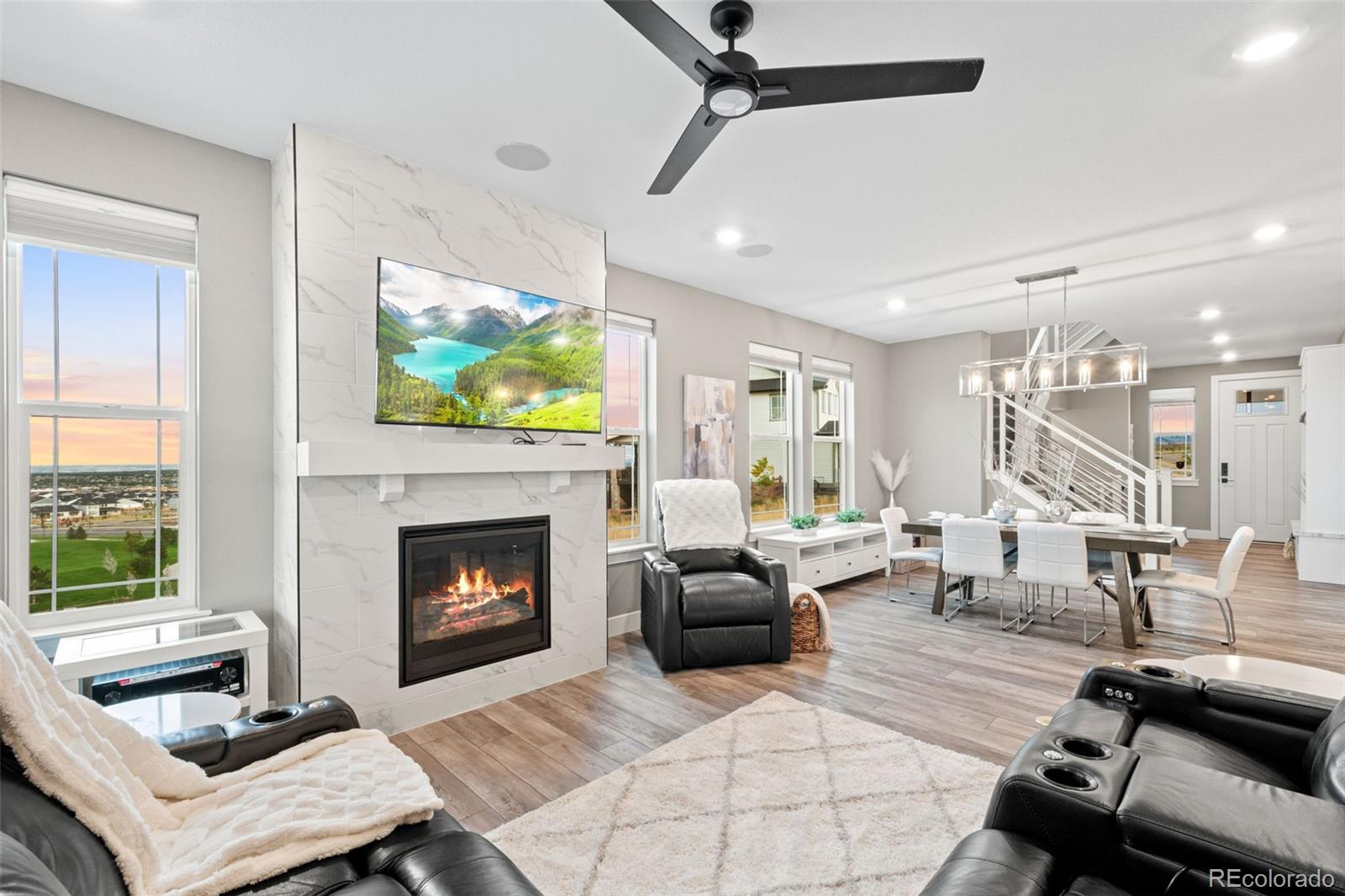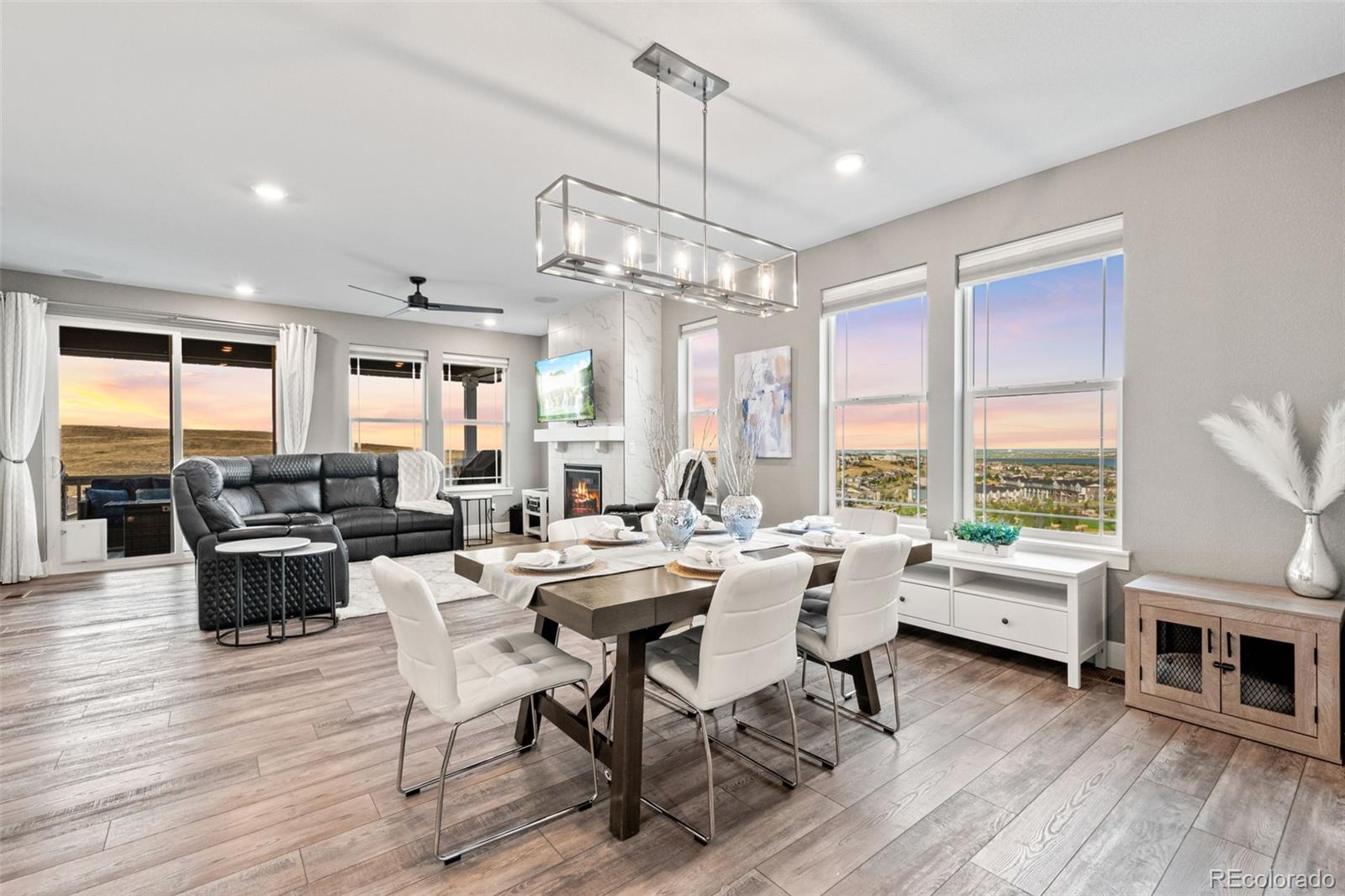 Step outside to the covered deck and take in sweeping views from sunrise to sunset. The backyard is designed for year-round enjoyment with a firepit for s'mores under the stars, a top-of-the-line Arctic Spas hot tub with motorized cover for privacy, and space for fun and relaxation. With thoughtful upgrades, spectacular views, and a community setting that balances tranquility with convenience, this home delivers the best of Colorado living.